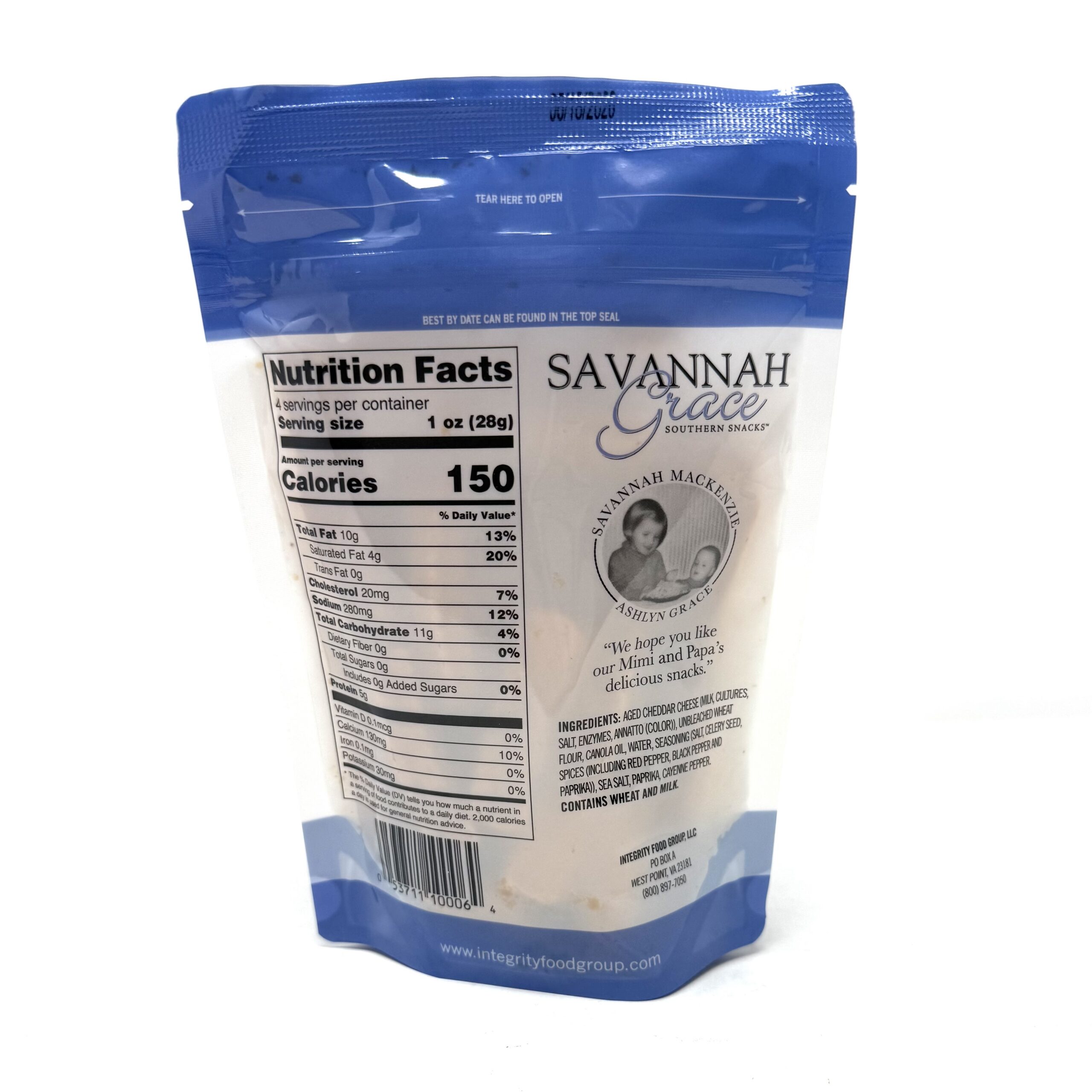 A 4oz bag of Virginia’s Finest Savannah Grace Taste of the Bay Cheese Straws!